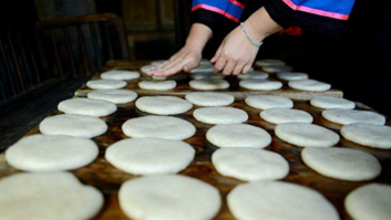 这一天,漳州的乡村人家要舂“交冬糍”庆祝好收成。糯米蒸熟后倒入石臼,舂得韧韧的,黏黏的,揪成乒乓球大小,细细地揉成团;花生米炒得香香的,磨得细细的,与白糖拌在一起。做好的小糍粑滚以白糖花生粉,摆放在大海碗里。食用时用筷子一口气串上几粒,就像拨浪鼓,所以也叫“拨浪糍”。做好“交冬糍”,得敬一敬土地神,感谢他慷慨的给予。