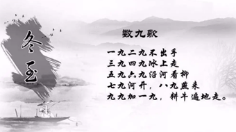 各地的人们根据各地不同的气候条件、景物特征、农事物候及风俗习惯,编排出了各种数九九谚语和顺口溜。比如九九消寒歌:“一九、二九不出手;三九、四九冰上走;五九、六九,沿河看柳;七九河开,八九雁来;九九加一九,更牛遍地走。”